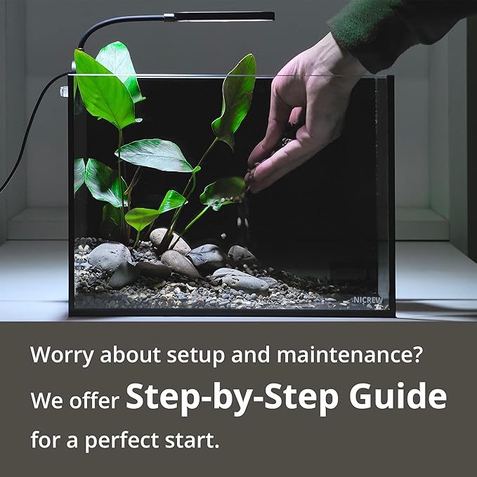 NICREW 2.5 Gallon Nano Nature Aquarium Kit, Ultra-Clear Rimless Desktop Fish Tank with Light and Filter, Perfect for Small Fish, Shrimp, or Betta, Basic Version, Black