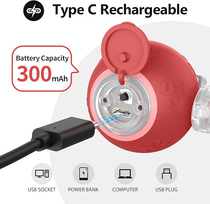 - USB Rechargeable: This interactive cat toy has a built-in rechargeable battery, and the charging port is located inside the switch button cover. Open the cover and easily charge it using the included USB cable.