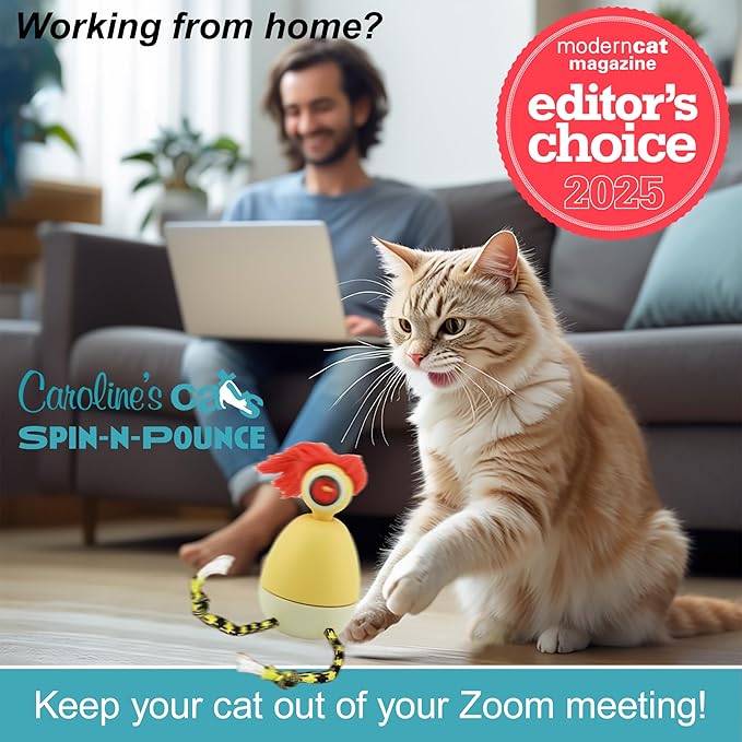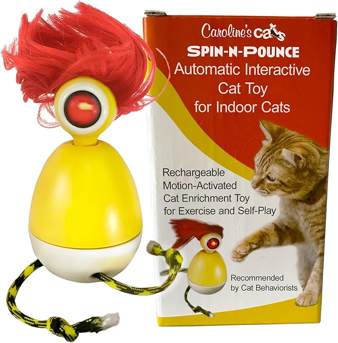 Caroline's Cats Automatic Cat Toy - Rechargeable Spin-N-Pounce with Touch Sensor, Silent Motor, 360-Degree Rotation, Interactive Kitten Toys for Indoor Cats, Encourages Self-Play and Exercise