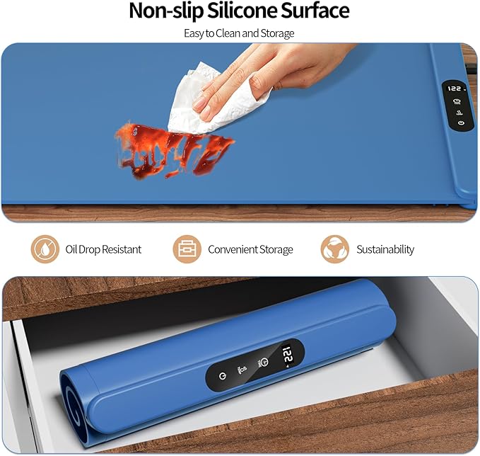 - 【Rollable, Portable & Easy to Clean】 This portable food warmer is flexible, foldable, and easy to store. Take it anywhere—home, office, camping, or travel—and enjoy warm meals on the go. Made of food-grade, stain-resistant silicone, this silicone electric warming tray cleans in seconds—no scrubbing needed.