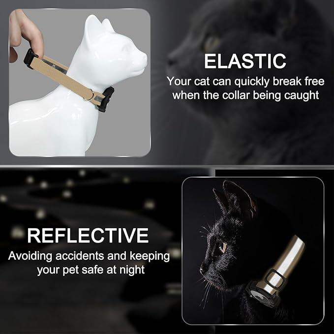 Reflective AirTag Cat Collar, Integrated Cat Tracker Collar with Air Tag Holder and Bell, Safety Elastic Band Cat GPS Collars for Girl Boy Cats, Kittens and Puppies (Khaki,XS)