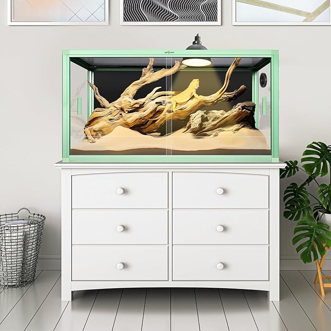 - Spacious Interior for Various Reptiles: With a generous 50 gallon capacity and dimensions of 36 inch long, 18 inch wide, and 18 inch tall, this tank provides ample space for your reptiles to grow, roam, and explore. Its spacious interior is ideal for housing a variety of reptiles, including Bearded Dragons, Snakes, Lizards, and Geckos, ensuring they have the room they need to thrive.
