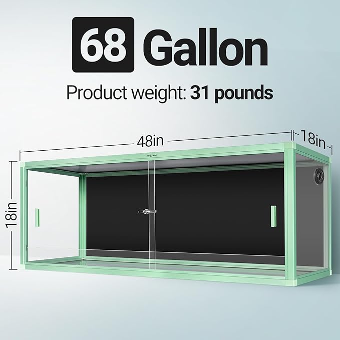 - Spacious Interior for Various Reptiles: With a generous 50 gallon capacity and dimensions of 48 inch long, 18 inch wide, and 18 inch tall, this tank provides ample space for your reptiles to grow, roam, and explore. Its spacious interior is ideal for housing a variety of reptiles, including Bearded Dragons, Snakes, Lizards, and Geckos, ensuring they have the room they need to thrive.