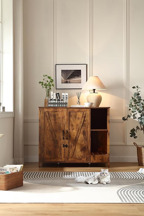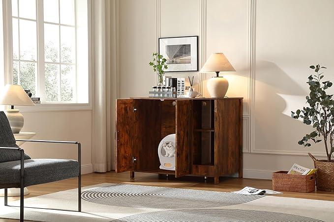 - 3)【Dog proof litter robot cabinet】;We exclusively design this litter robot enclosure box with a adjustable shlelf to prevent dog from entering to eat litter or hurt cat. This shelf can protect your cat, meanwhile, providing a space for you to place cat stuff.