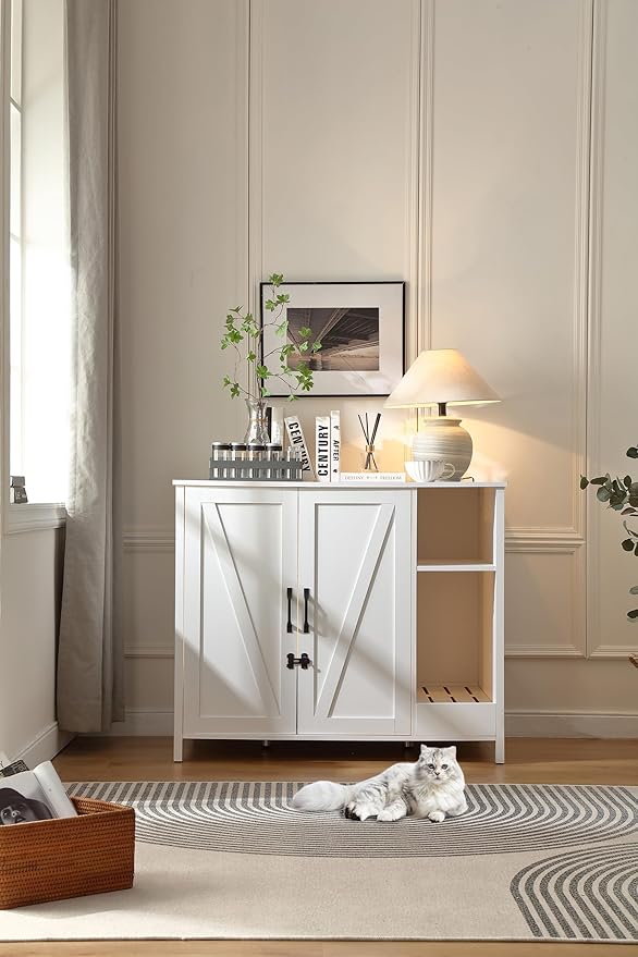 - 3)【Dog proof litter robot cabinet】;We exclusively design this litter robot enclosure box with a adjustable shlelf to prevent dog from entering to eat litter or hurt cat. This shelf can protect your cat, meanwhile, providing a space for you to place cat stuff.
