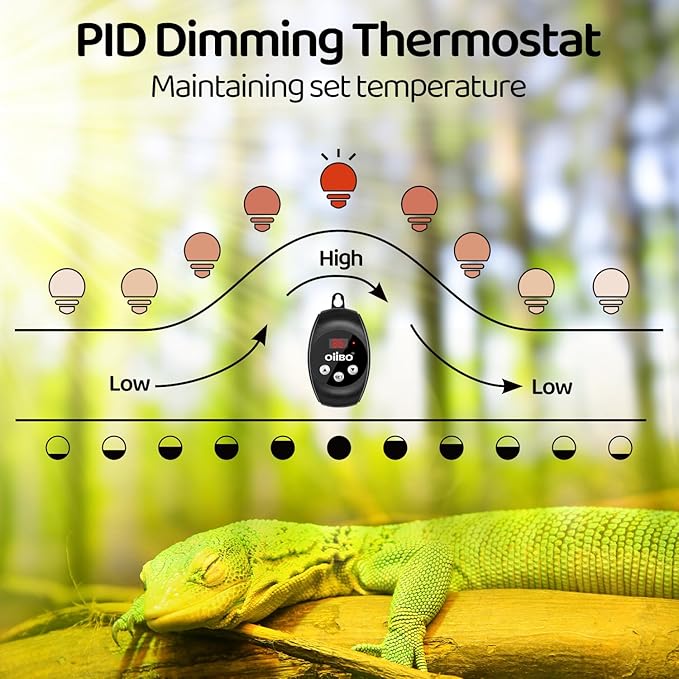 - 【Integrated Design】OIIBO reptile light fixture with dimming thermostat is a reliable and convenient way to maintain the proper temperature for reptiles, help create a comfortable living environment for your pet. (Heat bulbs NOT included )