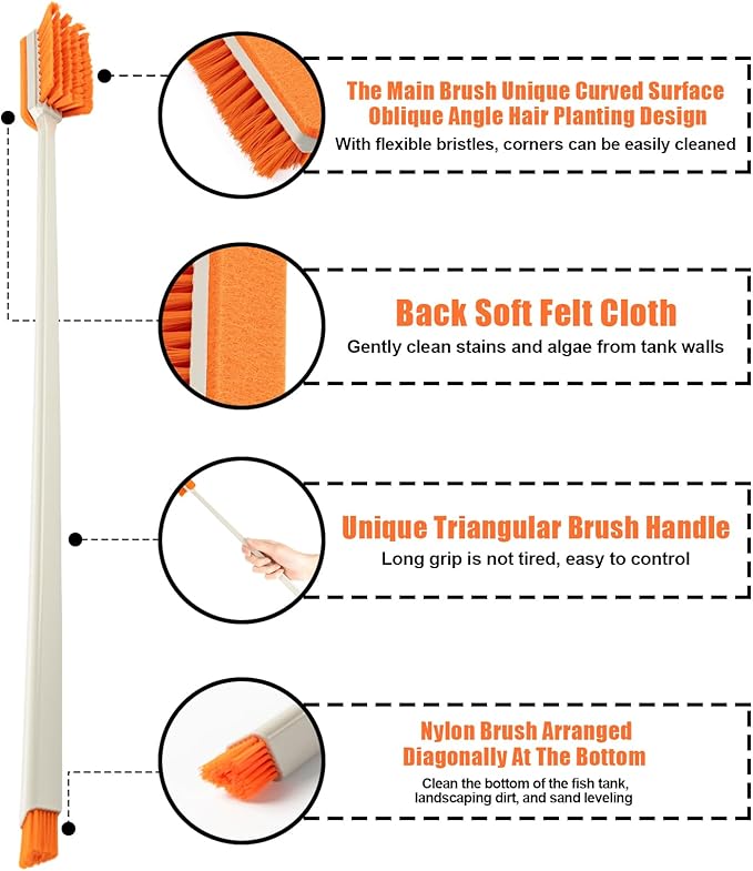 - Efficient Algae Removal Tool: Fish tank cleaner is designed specifically for aquariums, proficiently removes accumulated algae. Unique triangular brush handle ensures effortless clean to every corner of your fish tank.