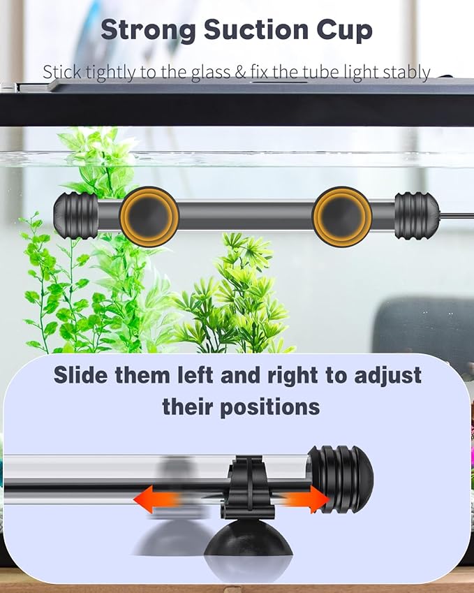 - 7.5" in Length: This aquarium LED light works best in small tanks – sufficient to light up the entire tank anytime to promote the healthy growth of aquatic lives. It can be easily fixed on your tank with the attached suction cups.