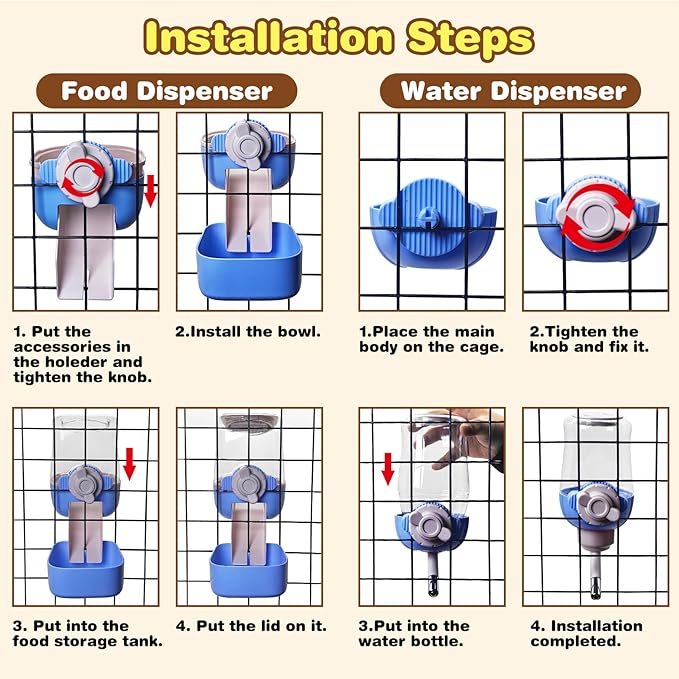- Easy to Clean: Automatic rabbit feeder and waterer set is made of high quality plastic material, the parts are easy to disassemble, convenient for your daily cleaning, it is recommended to wash it once a week and dry it before giving it to your pet