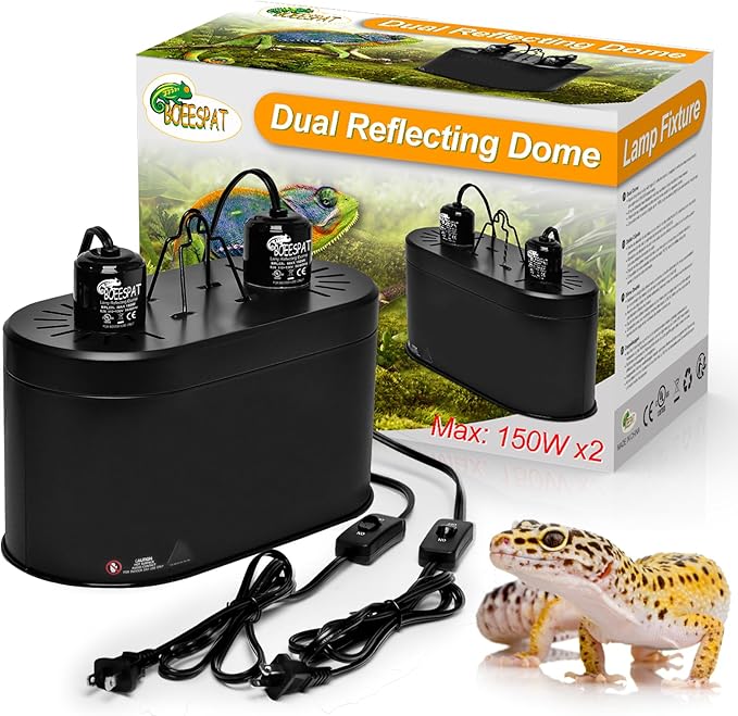 Dual Reptile Reflector Dome Lamp Fixture Cap with Separate Switches for Reptile & Amphibian Habitat Terrariums (Max 150W)