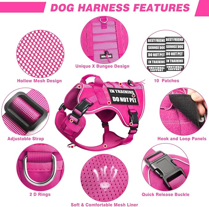 - 【Mesh Design Harness with 10 Dog Patches】: This tactical dog harness with Soft breathable mesh helps dog to have extra airflow, quick to dry for all seasons. Aire mesh harness have a good fit and extra stability. The package contains a WINSEE dog vest harness and 5x2 pieces of dog patches with sewed letters, such as “Service dog”, “do not pet”, “in training”, “emotional support” and “Service dog in training”, enough quantity for you to decorate the dog’s vest harness.