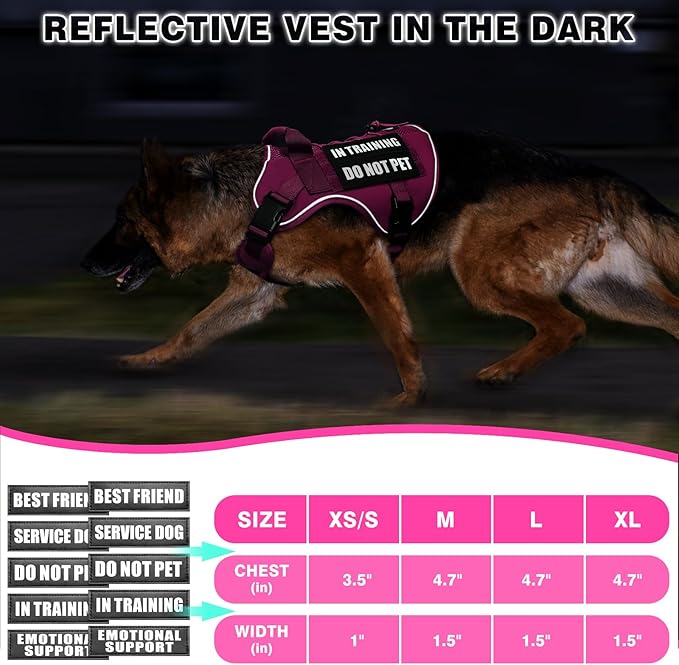 - 【Mesh Design Harness with 10 Dog Patches】: This tactical dog harness with Soft breathable mesh helps dog to have extra airflow, quick to dry for all seasons. Aire mesh harness have a good fit and extra stability. The package contains a WINSEE dog vest harness and 5x2 pieces of dog patches with sewed letters, such as “Service dog”, “do not pet”, “in training”, “emotional support” and “Service dog in training”, enough quantity for you to decorate the dog’s vest harness.