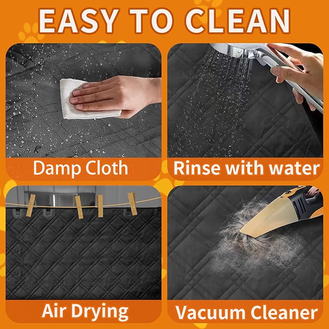 - 【Easy to remove and clean】-The Wuatow back seat cover only takes a few minutes to remove or install.The dog car seat cover for back seat is easy to clean with a damp cloth or vacuum cleaner,keeping your car clean anytime and anywhere.