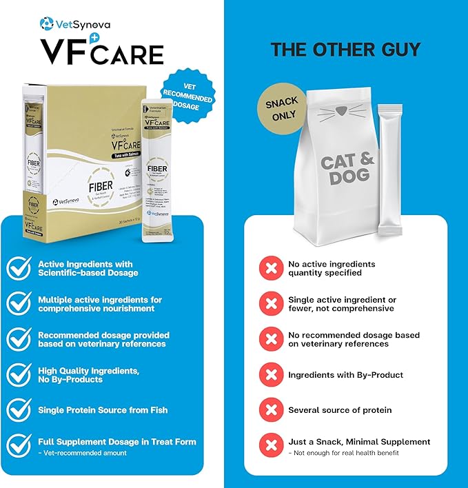 Fiber for Cats & Dogs – Tuna with Salmon – Cat Hairball Remedy & Cat Constipation Relief – 6 Functional Fibers with Prebiotics for Gut Health, Hairball Control – 30 Sachets