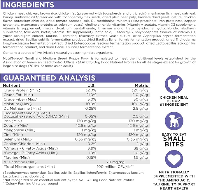 NutriSource Puppy Food for Small and Medium Breeds, Chicken Meal and Rice, 4LB