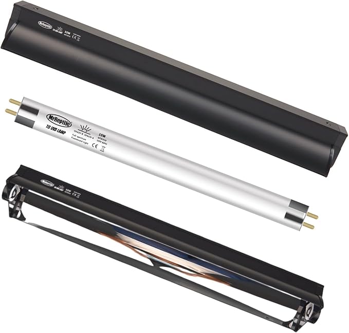 T8 UVB Reptile Light Kit, 15W UVB Light Fixture and 10.0 UVB Lamp Bulb Kit, for Desert-Dwelling Reptiles, Bearded Dragon UVB Light 18 inches