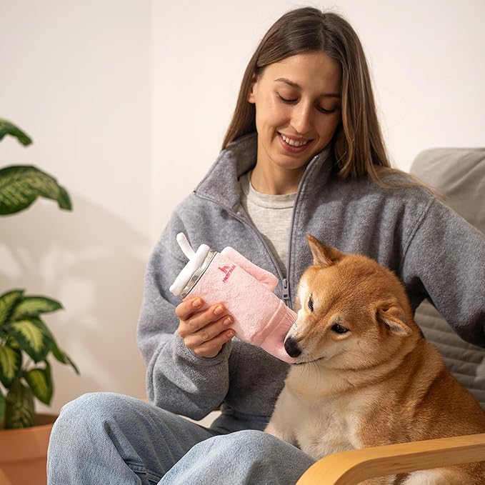 Tumbler Cup Funny Dog Toy - Parody Plush Squeaky Crinkle Dog Toy (Pink Dusk)