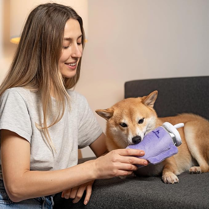 Tumbler Cup Funny Dog Toy - Parody Plush Squeaky Crinkle Dog Toy (Orchid Purple)