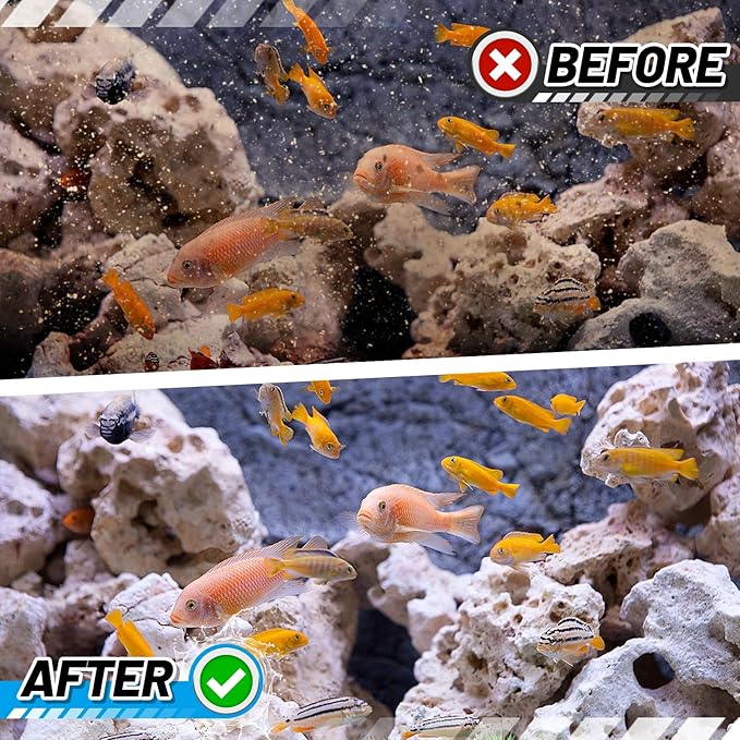 - Advanced Filtration System: The outer layer is crafted from high-density cotton material, efficiently capture debris, impurities, and fish waste. The middle layer contains ultra-activated carbon, which removes heavy metal and harmful items from water, ensures a clean, healthy, and comfortable environment for your fish.