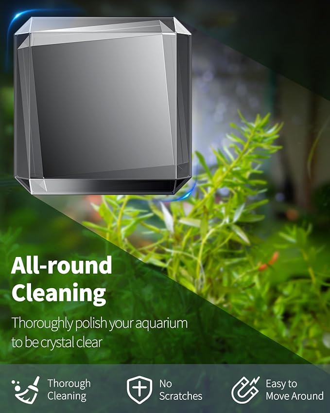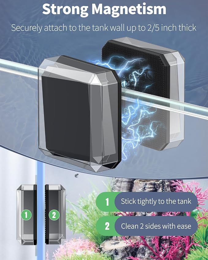 - Strong Magnetism: The magnetic aquarium glass cleaner always securely attaches to the tank wall up to 2/5 inch thick. No risk of falling off! Make sure the magnet is clean before using it in your aquarium