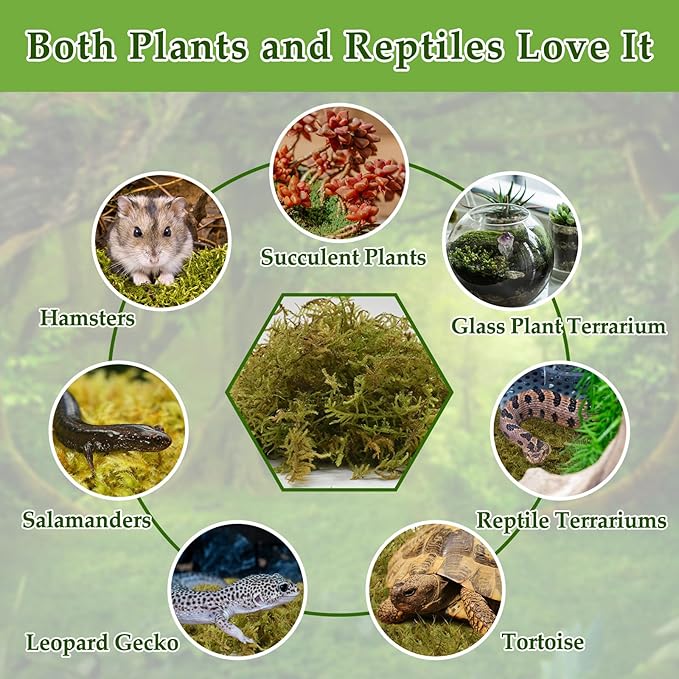 - Great Humidity Retention & Breathability: This terrarium moss is fluffy and absorbent, can provide a moist living environment for your reptiles. The moss also has an insulating effect, which will help the reptiles have a safe and cozy winter.