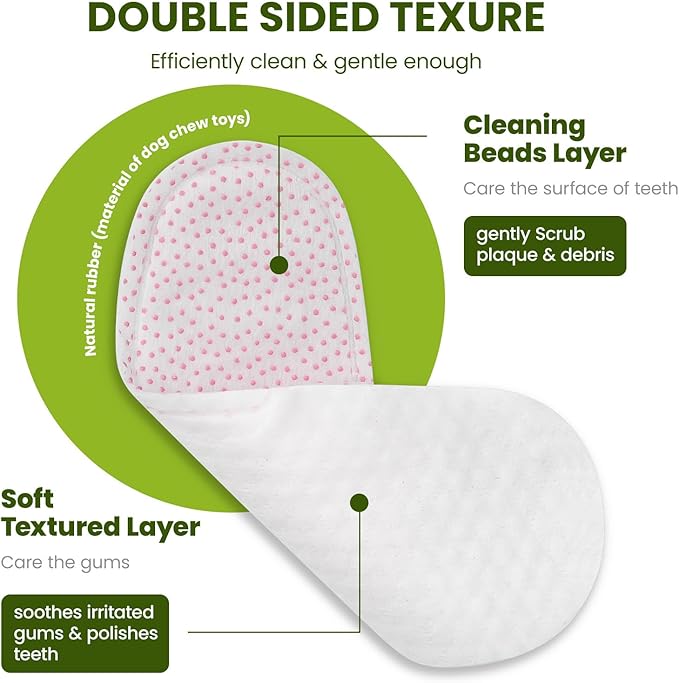 - 【Dual-Texture Design - Puppy-Gentle 】Our dog tooth brushing kit features a unique design with different textures on both sides. This teeth cleaner for dogs has a Cleaning Grid on one side, which target plain between teeth with raised nuts. The other side has a Massage Texture, which also massage gums while cleaning for gum health support.