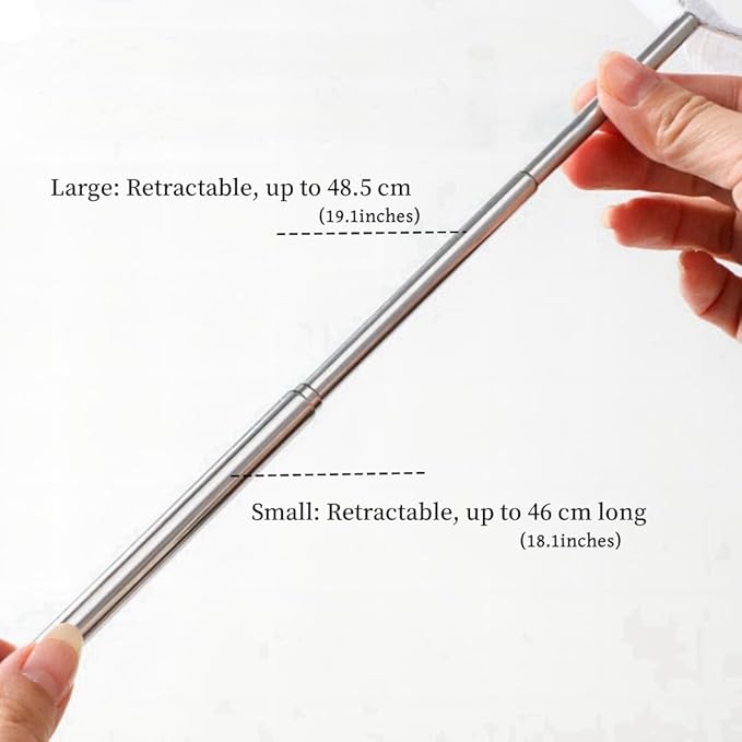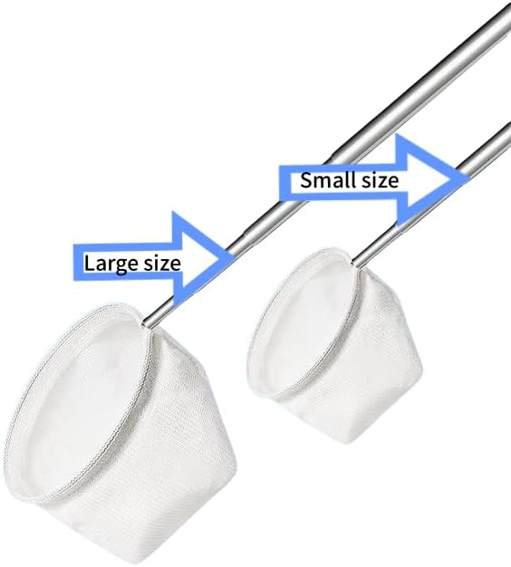 - 2:Retractable design for easy use: the small size of aquarium net can be retracted to 46 cm/18.5 inches, and the large size can be retracted to 48.5 cm/19 inches, so you can easily achieve the corners of the fish Aquarium without getting your hand-damp
