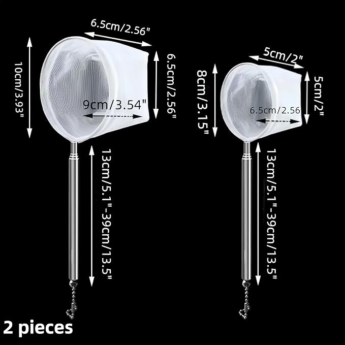 - 1: fishing gear Aquarium Fishing Nets, retractable nets ,it features long and sturdy handle,The size of the small fishing net is 21cm, and the large size is 23cm, which can easily cope with different fish Aquarium scenes, and is suitable for catching small fishs, shrimp or aquatic weeds