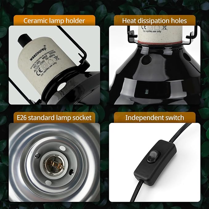 - 【Heat-Resistant Ceramic Lamp Holder】: This heating lampshade uses a high-temperature resistant ceramic lamp holder, which is durable and has a special E26 standard lamp holder, which is compatible with a variety of light bulbs and is easy to install. Create a warm and comfortable habitat for your pet