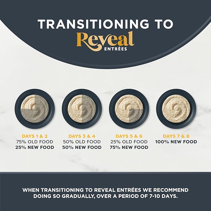 - No Artificial Colors, Flavors, or Preservatives: Made with natural ingredients with added vitamins and minerals, Reveal Entrées is free from unnecessary additives providing a delicious balanced meal that is sure to make mealtime the highlight of your cats day. As with any new food, we recommend introducing Reveal Entrees gradually to make the change easier on your cat’s digestion.