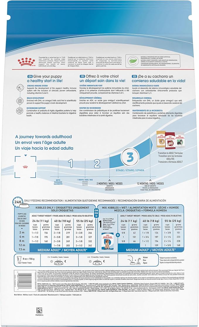 - GROWTH AND DEVELOPMENT: Medium breed Royal Canin dog food for puppies supports brain development and energy needs during growth and development
