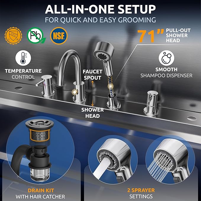 - UTILITY & GROOMING STATION - KANIS Proudly introduces The most Complete and Versatile dog bathtub! Suitable for general home cleaning and pet washing, our grooming sink is a must-have in a multi-functional utility room, laundry, or garage. Superior Quality, Durable & Rust-resistant 304 Stainless Steel, No Leak Fully Welded Construction and Easy to install.