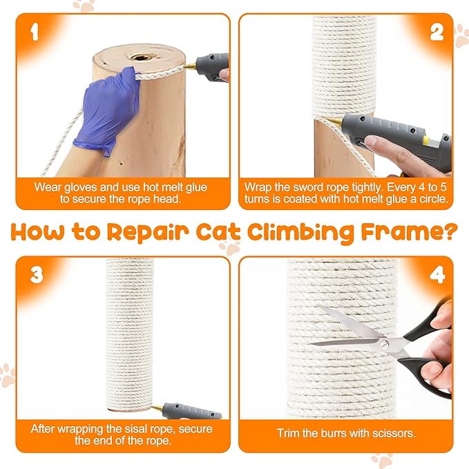 - Simple Setup: Wrap the 6mm/1/4 inch jute rope around surfaces like cat trees or furniture legs and secure with glue for a hassle-free, sturdy cat scratching solution that your feline friends will love