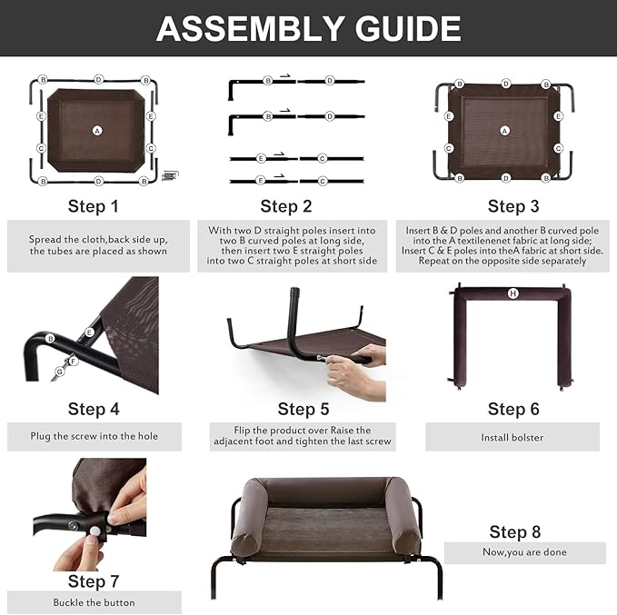 - 【EASY ASSEMBLE COOLING ELEVATED DOG BED SIZE】: Outdoor elevated dog bed for medium and large dogs up to 50 lbs. Very easy to assemble — setup takes just minutes, and even seniors or children can do it. The lightweight design adds portability, making it perfect for travel.