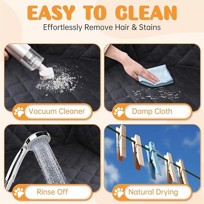 - 【Easy to Install & Clean】 The dog back seat cover is easy to install or uninstall within seconds. An installation video is also provided for your convenience. Thanks to the waterproof and non-sticky material, cleaning is a breeze—simply wipe with a damp cloth or vacuum. Enjoy your trips without any worries