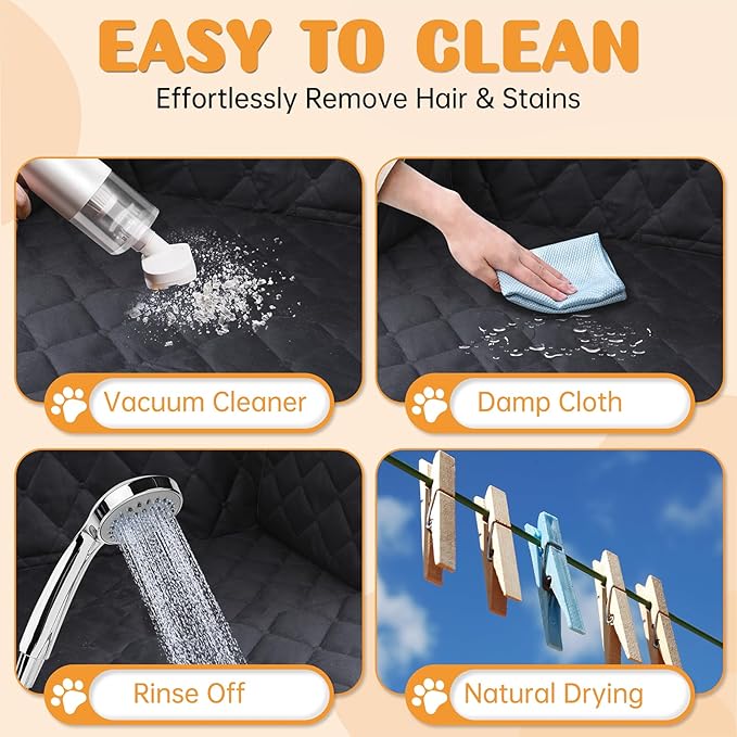 - 【Easy to Install & Clean】 The dog back seat cover is easy to install or uninstall within seconds. An installation video is also provided for your convenience. Thanks to the waterproof and non-sticky material, cleaning is a breeze—simply wipe with a damp cloth or vacuum. Enjoy your trips without any worries