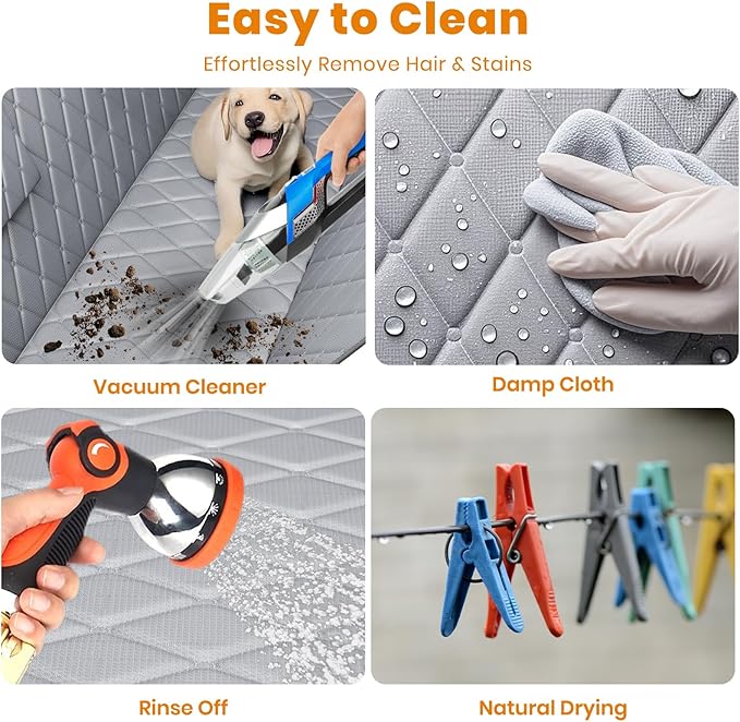 - 【Easy to Install & Clean】 The dog cover for car backseat is easy to install or uninstall within seconds. An installation video is also provided for your convenience. Thanks to the waterproof and non-sticky material, cleaning is a breeze—simply wipe with a damp cloth or vacuum. Enjoy your trips without any worries