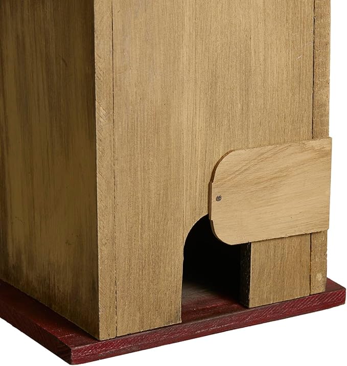 - DRESS and FEED - Our decorative birdhouse measures 6.75"L x 5.50"W x 14.25"H; Entrance hole: 1.18"D in diameter; and the back clean door: 1.57"L x 2.36"H. You are not only dressing your garden but also offering your feathered friends a cozy home. We offer you 100% satisfaction guarantee for the birdhouse to avoid birds living in defective nest. Your bird friends get house warranty in our store.