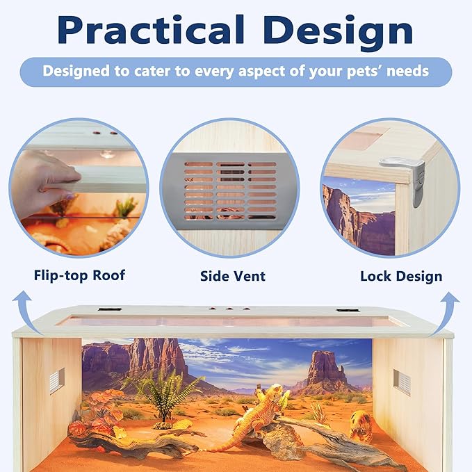 - 【Premium Reptile Habitat】Designed for reptile enthusiasts, our enclosure offers a spacious interior for your reptiles to roam freely. The transparent front and top acrylic panels provide an unobstructed view, while top vents ensure proper air circulation. Please note: This tank is not suitable for holding water and is available in 4 size variants!