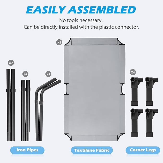 • Easy to Install: The cooling dog cot can be installed without the use of any tools, screws and can be installed directly with the plastic connector. It only takes a few minutes of your time, and presto. It's up and ready for your pet to enjoy in. Perfect for any indoor space or outdoor adventure.