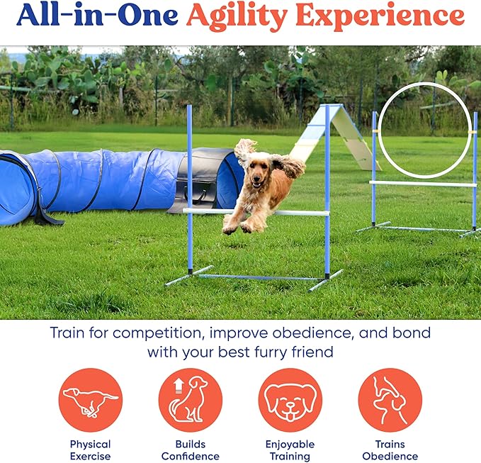 - YOUR OWN DOG AGILITY COURSE BACKYARD SET – Skip the dog park and train at home with quality dog agility equipment designed for durability, engagement, and growth—indoors or outdoors.