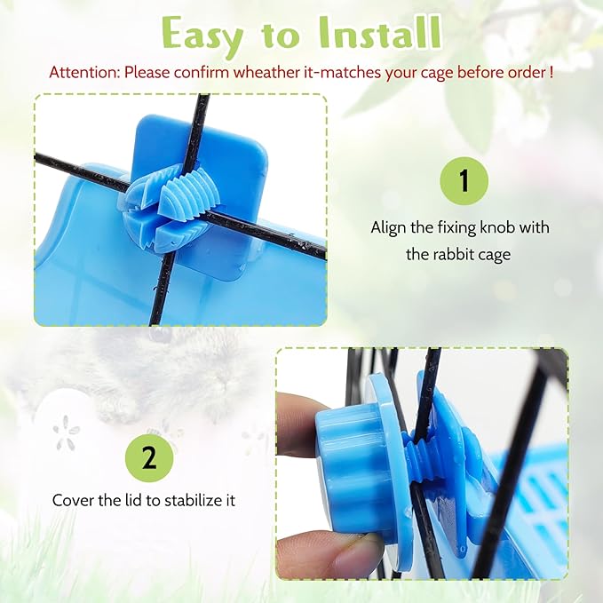 - EASY TO INSTALL: The rabbit litter box comes with 2 clasps to securely attach the litter box to the hutch. The Hay holder comes with a screw mount on the back, which makes it easy to attach to the hutch without any tools, and the height can be adjusted freely