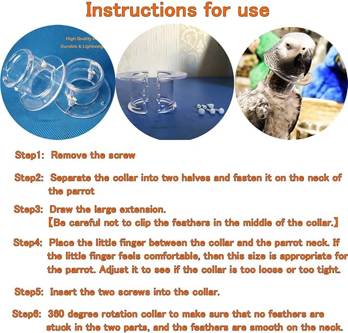 QBLEEV Pet Parrot Anti-bite Collar, Anti-Grab Feather Lick Wound Healing Neck Collar, Stress-Free Recovery from Injuries Post-Surgery, Protective Recovery Collars Fit Lovebird Macaws Budgies Cockatiel