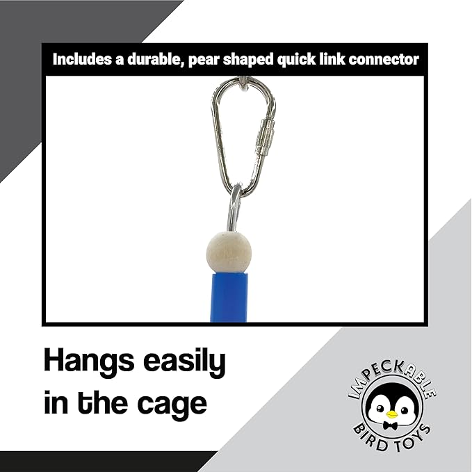 - - Installs easily in cages with the top-mounted quick link connector and offers enrichment with movement and bright colors. Parrot accessories like these offer excellent foraging fun.