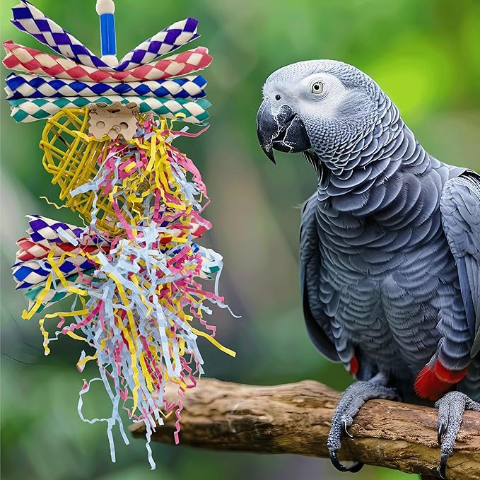 - - Great for promoting chewing, foraging, shredding and mental engagement inside the cage or on a play stand. The Chinese finger traps the toy is crafted with are soft and easy to rip apart.