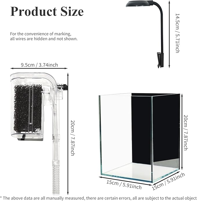 - Premium Low Iron Glass Construction:Crafted from 4mm thick high-definition low iron glass, this 1-gallon nano aquarium provides crystal-clear visibility for vibrant fish and plants. Its compact 5.9" x 5.9" x 7.87" design fits easily on desks, shelves, or counters, adding a touch of aquatic elegance to any space