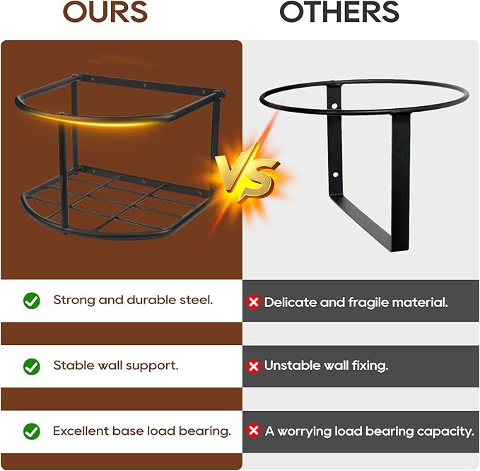 - Easy installation: Using matching screws and wrenches to secure the 3 connecting rods to the top and bottom connections, the bucket rack can be easily assembled by one person.We offer two types of screws that allow your bucket holder to be easily attached to the board or wall.
