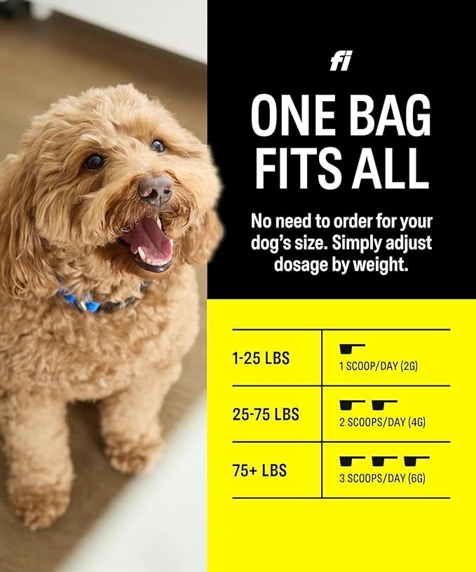 - Complete Daily Support with a Dog Health Supplement – Fi’s daily dog supplement supports joint health, digestion, immunity, and overall well-being, making it a top choice for those looking for daily support to maintain their dog’s health.