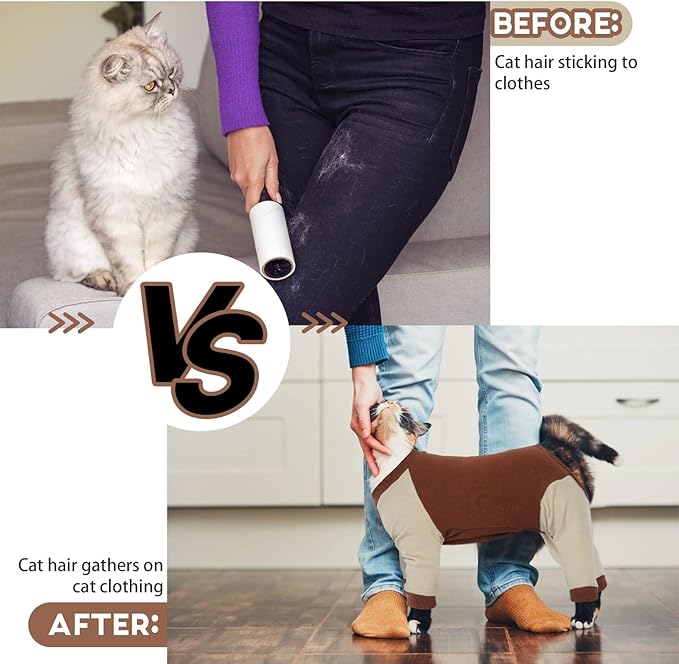 - Cat Sticky Hair Clothes- QBLEEV cat clothes are made of material that can stick hair, which is lightweight, elastic, soft and comfortable. The cat pajamas can easily stick the hair that falls off your pet cat during the shedding season, effectively helping you reduce the time for cleaning cat hair