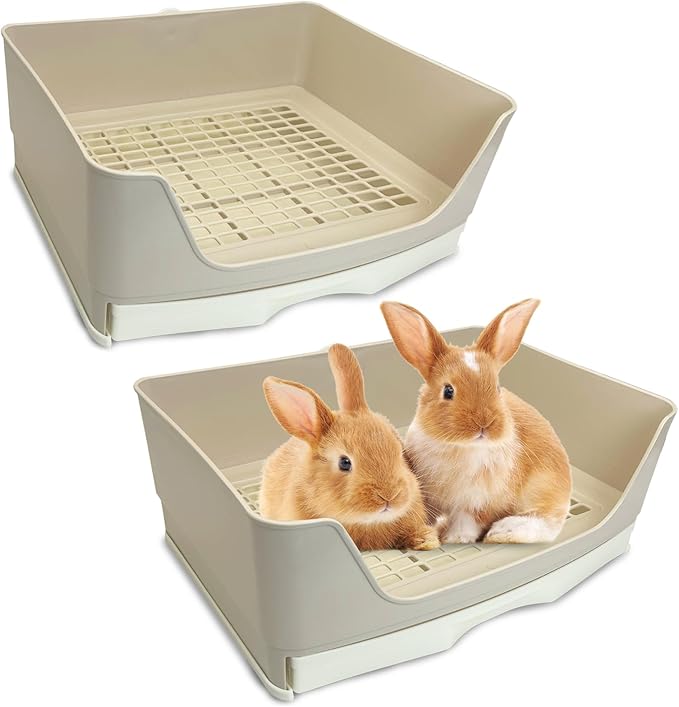 - MATERIAL: The bunny litter box is made of durable, stain and odor resistant plastic. The bottom is reinforced to withstand small animals of 3-8 kg